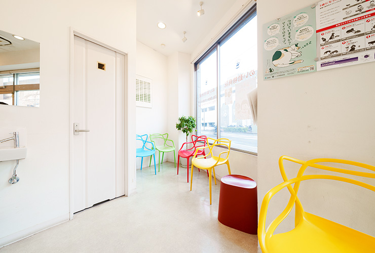 待合室は飼い主さんがリラックスできるよう広めに作り、妻のアイディアで北欧をイメージした内装にしました。