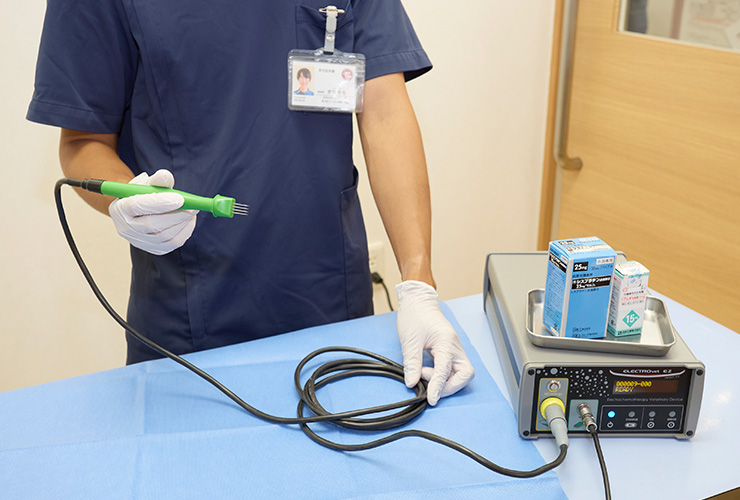 体表の悪性腫瘍に電気パルスを与え、抗がん剤の効果を局所的に増強する「電気化学療法」を提供しています。