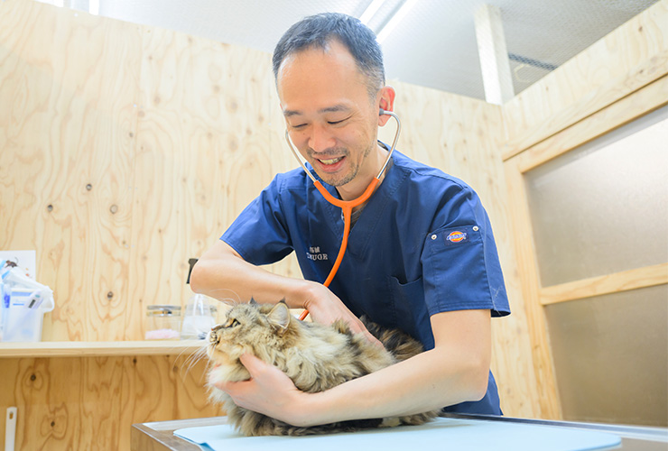 当院ではペットとご家族が少しでも長く、良い時間を過ごしていただきたいという思いで治療に努めています。飼い主様に病気についての理解を深めていただくために、ご説明の際に状態を絵に描いて説明したり、例えを用いたりするなどの工夫を行っています。ご不安や疑問に思うことがありましたら、ぜひお気軽にご質問ください。