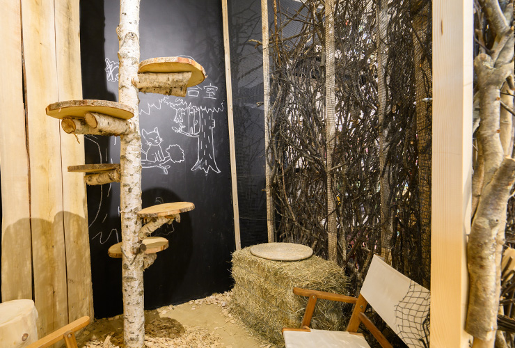 「AZemの森ナーシングパーク」という、自然をイメージした空間です。樹木や牧草の香り、土の匂いを感じていただいて、都会で暮らすペットや飼い主様にリラックスしていただきたいと思っています。待合室や診察室はワンちゃんネコちゃんが完全別室になっていますので、ほかの動物が苦手な子も安心してご来院ください。